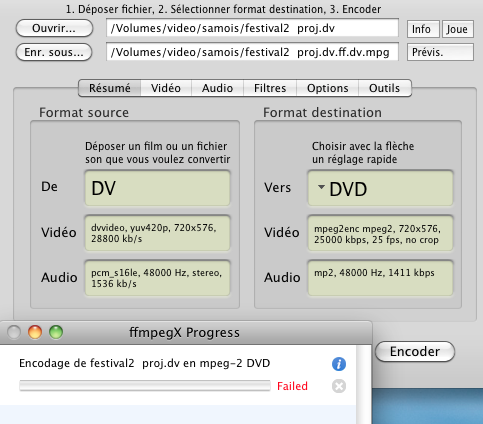 Ce que je n'ai pas compris : après le montage sur FCP, l'export par compressor n'était pas actif; Je suis passé par .dv pour y être reconnu ?